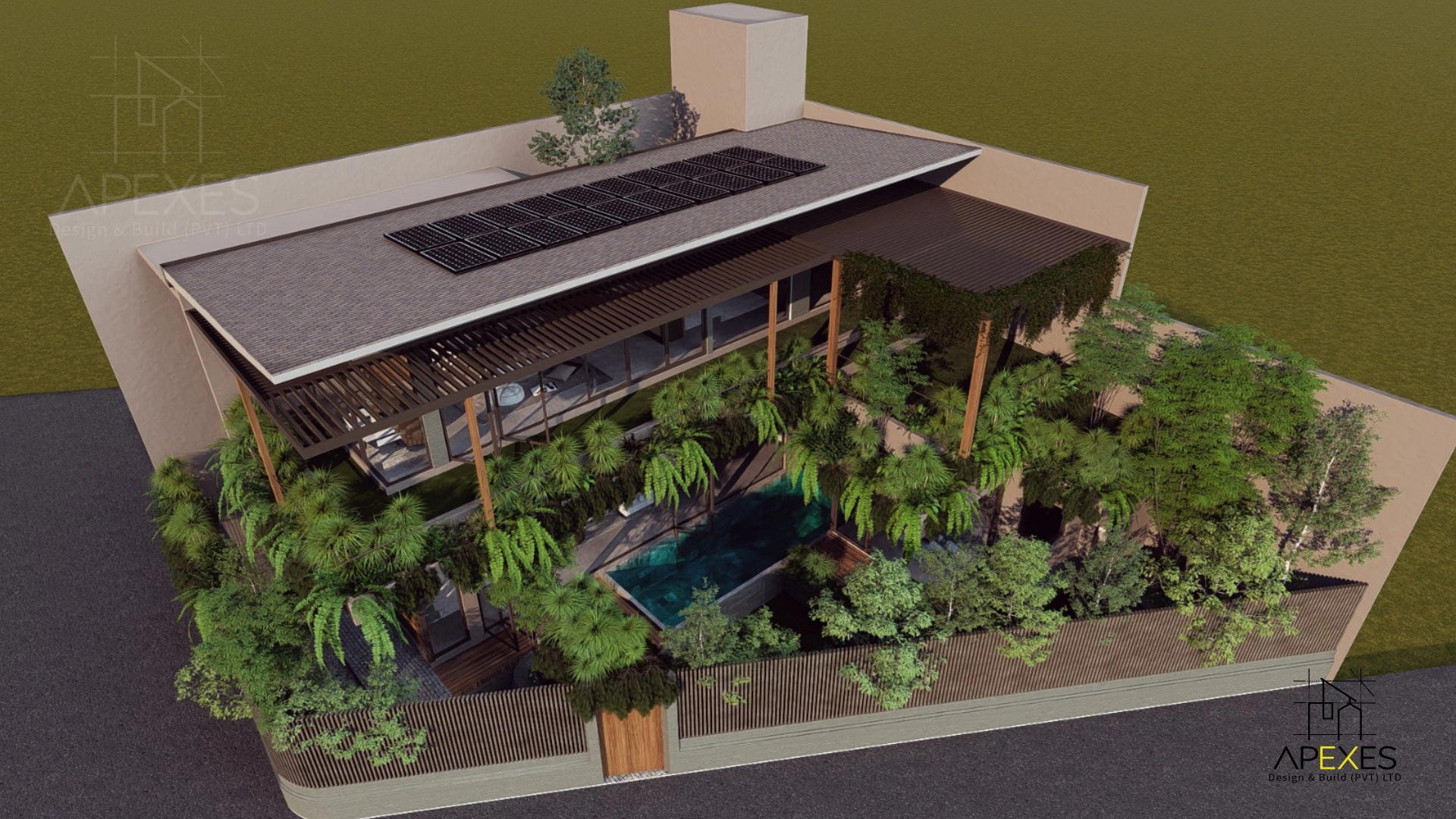 • Urban Aquatic Retreat: A central swimming pool acts as a natural cooling agent for the ground floor, providing a serene visual anchor for the dining and transition spaces.